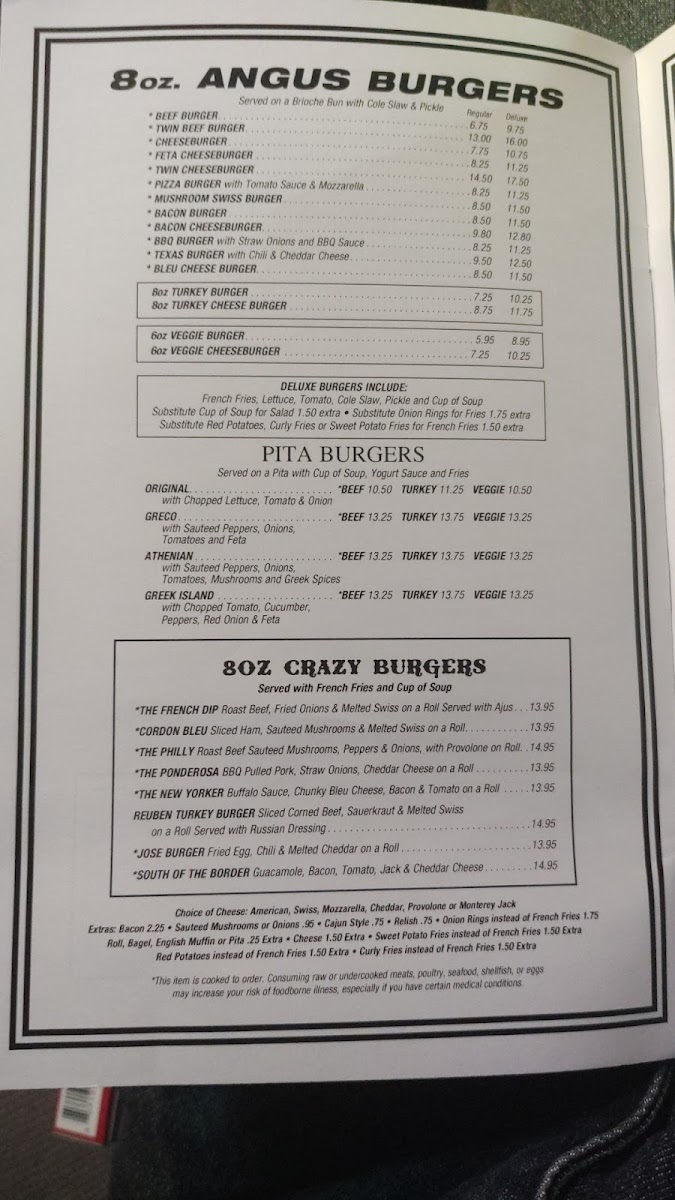 Start your day with comforting plates like blueberry pancakes and the Farmer's Omelette, or enjoy lighter choices such as the egg white omelette with spinach, mushrooms, and feta. The midday lineup features satisfying sandwiches and specialty burgers, including selections like the El Paso Burger or the Medford Melt, often paired with classic sides like potato salad, cole slaw, or crispy fries.